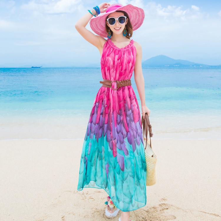 TE8655MSJ Bohemia Chiffon-Strandkleid mit Farbverlaufsdruck