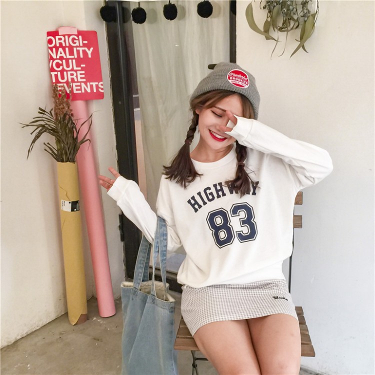 TE6223MDFS Langarm-Sweatshirt im koreanischen Mode-Preppy-Stil mit Buchstabendruck
