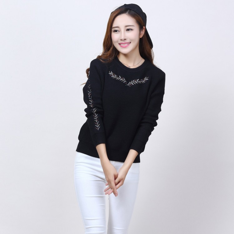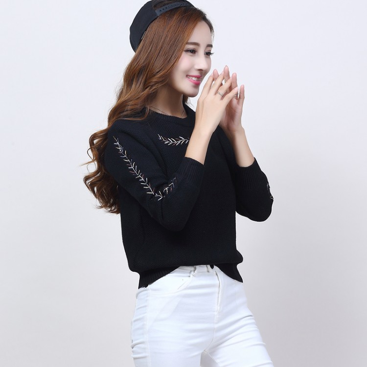 1909 Herbst heißer koreanischer Mode-Rundhals-Stickerei-Langarmpullover