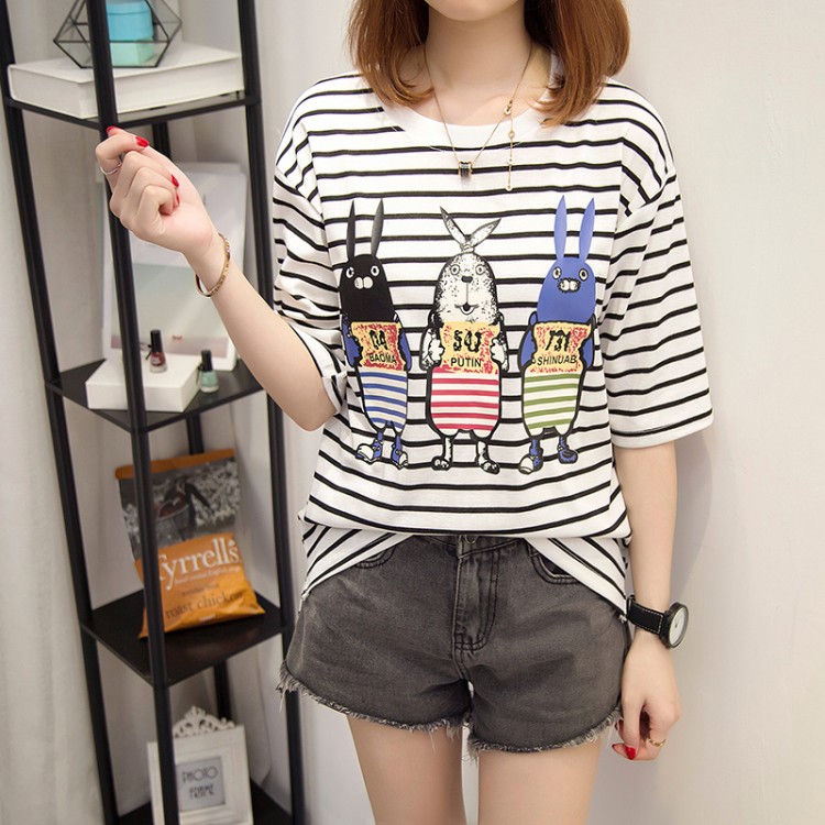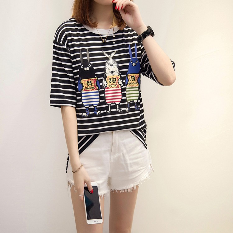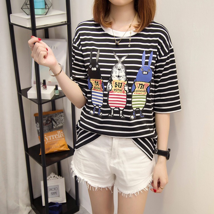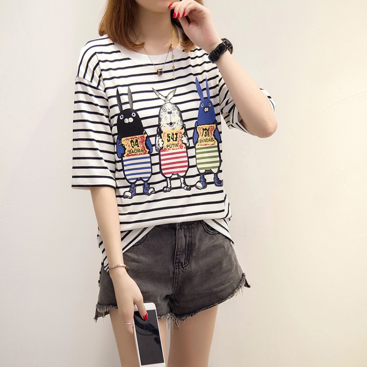 3935 gestreiftes, kurzärmliges T-Shirt mit Cartoon-Print