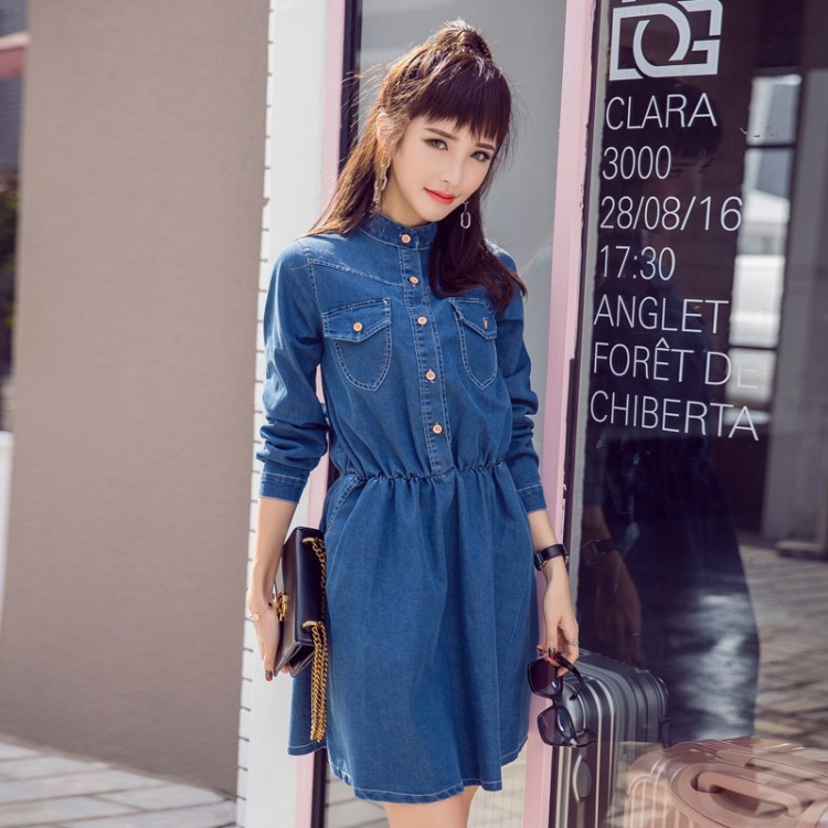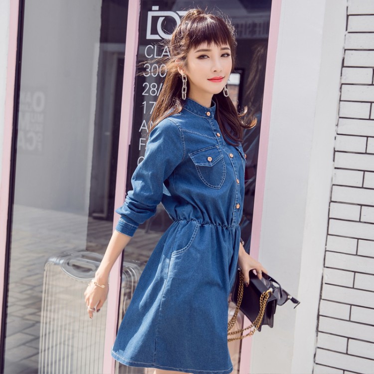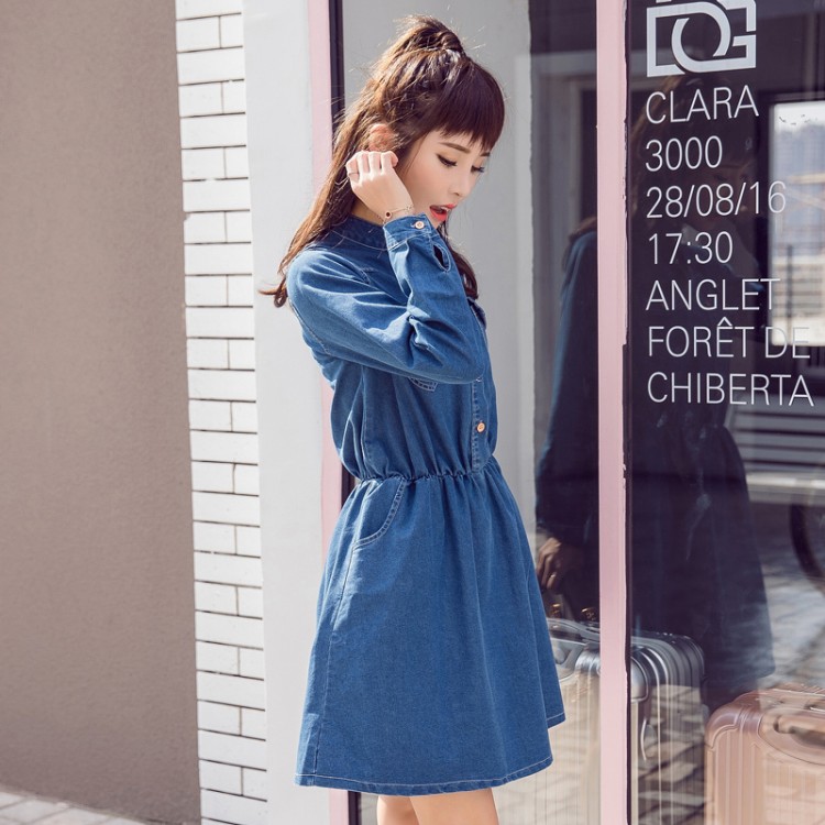 5559 Frühling und Herbst koreanische Frauen lange Ärmel lässige Mode Joker Denim Kleid