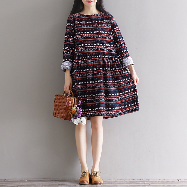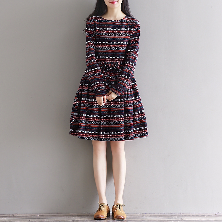 5830 Kunst berühmtes Kleid mit rundem Kragen und weitem, lockerem Schleifmuster