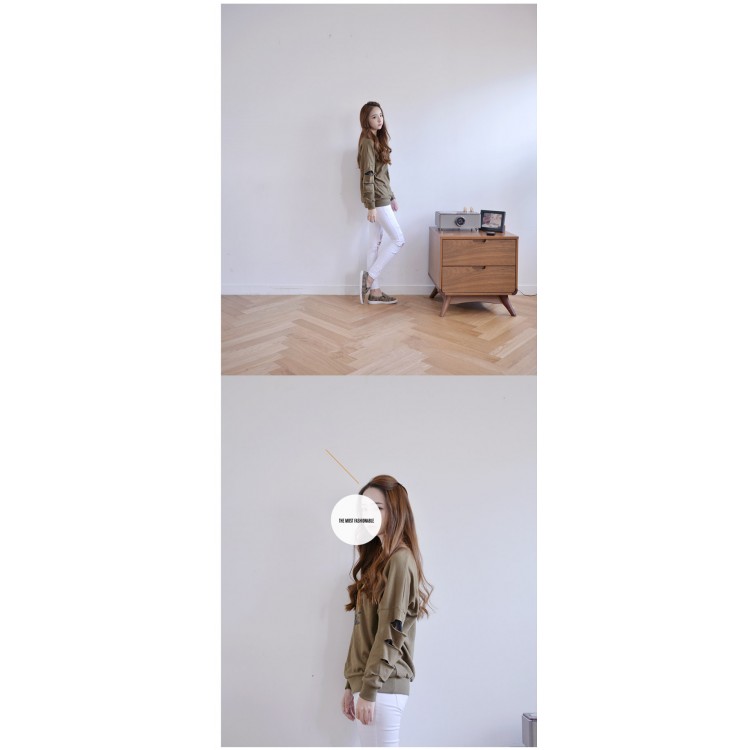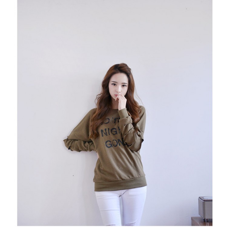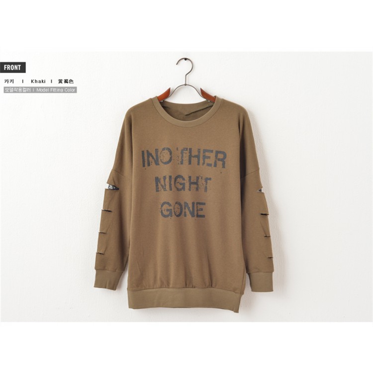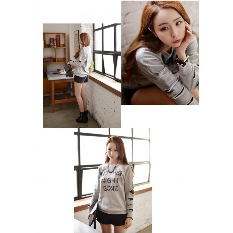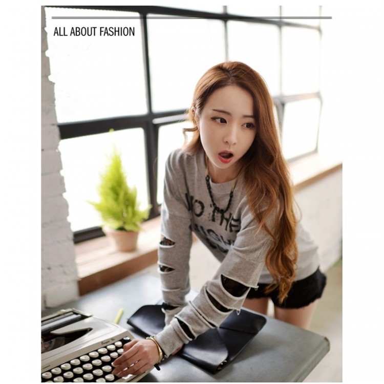TE1525GJWL Lässiges, modisches T-Shirt mit Buchstabendruck, Löchern an den Ärmeln, Spitzenspleiß