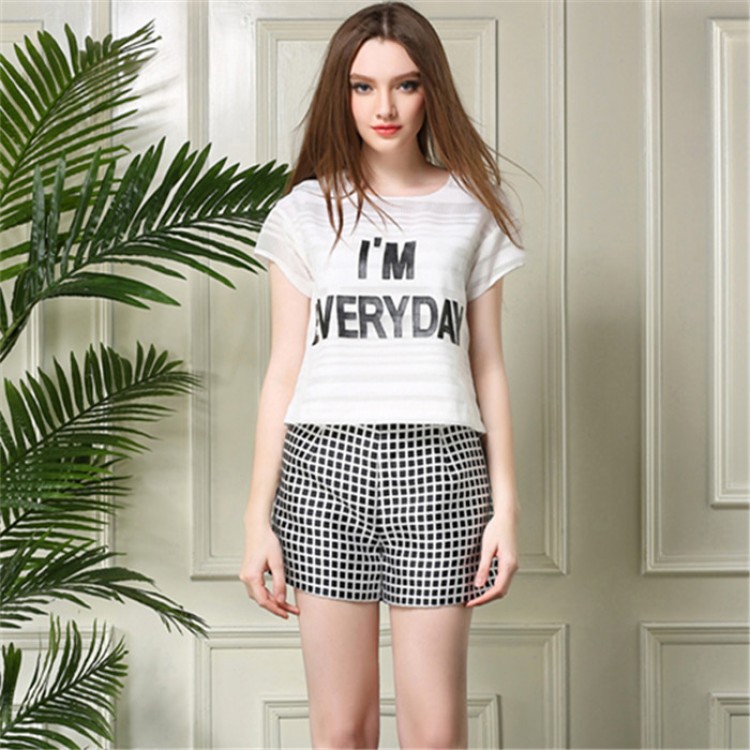 Schreibe die erste Bewertung für „TE5832NS Europa Mode-Temperament-Buchstaben-Print-Tops mit karierten Shorts“