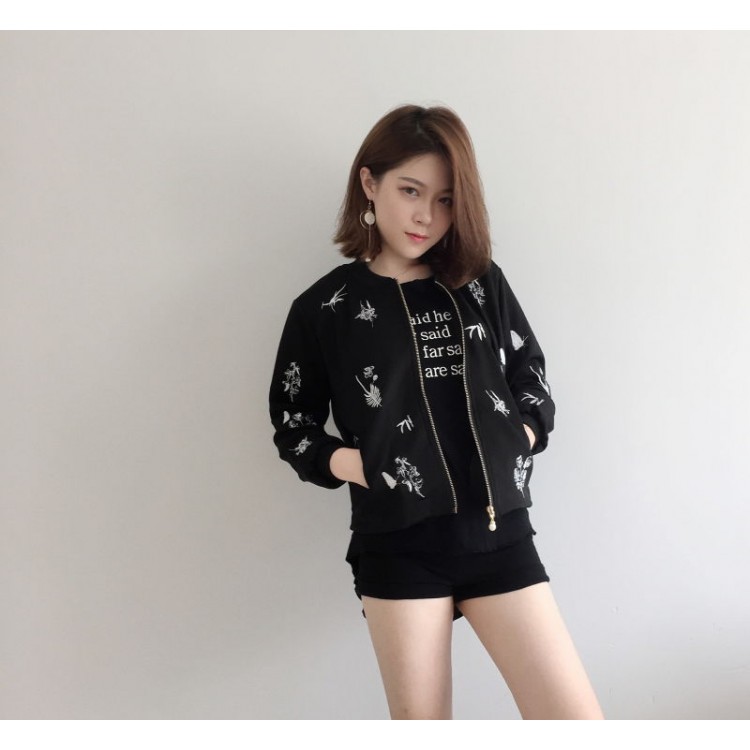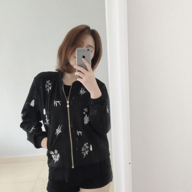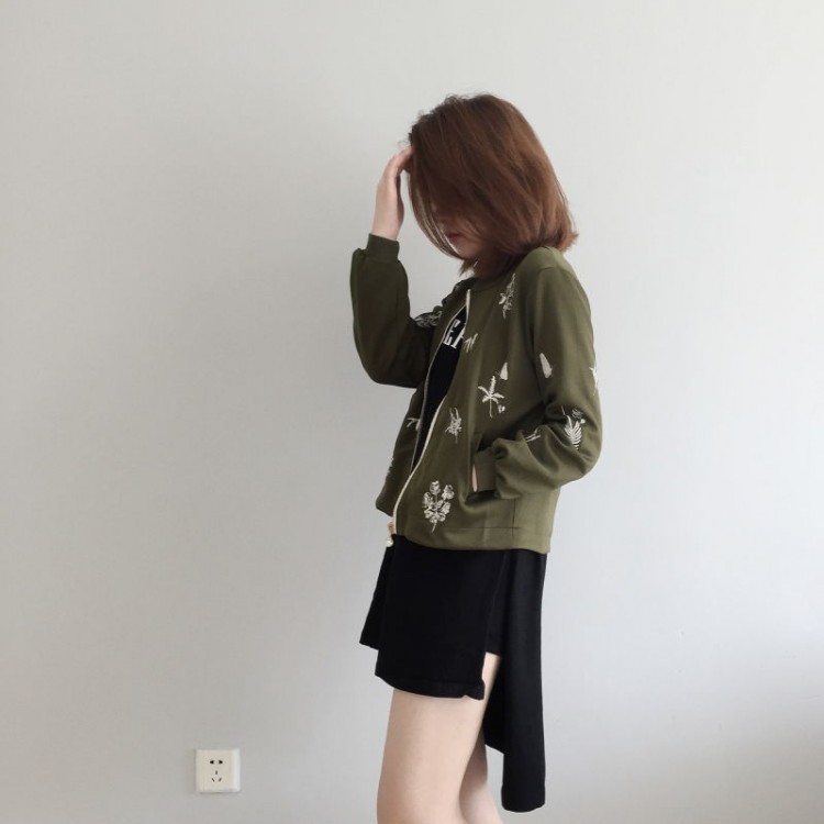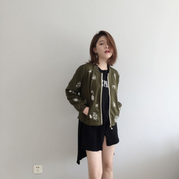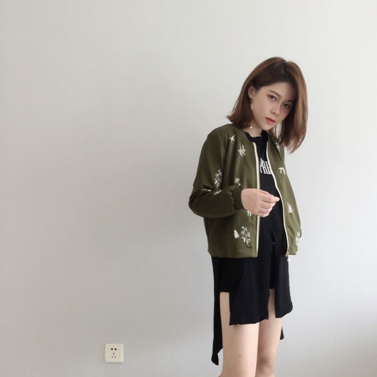 TE674YRYY Herbst neuer Stil Stickerei Stehkragen Baseball-Kurzmantel