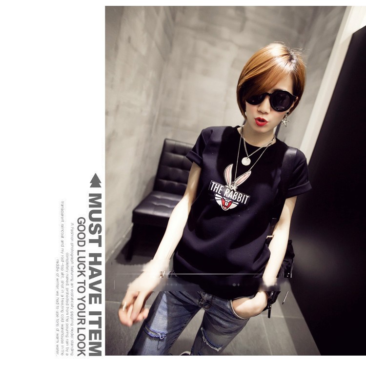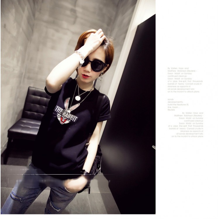 TE9017ALS Sommer-T-Shirt mit Superman-Kaninchen-Aufdruck im koreanischen Stil