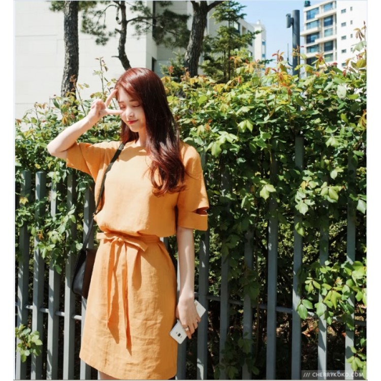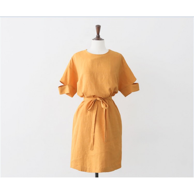 TE9919WJYS Sumer Ramie Fresh Slim-Kleid im koreanischen Stil
